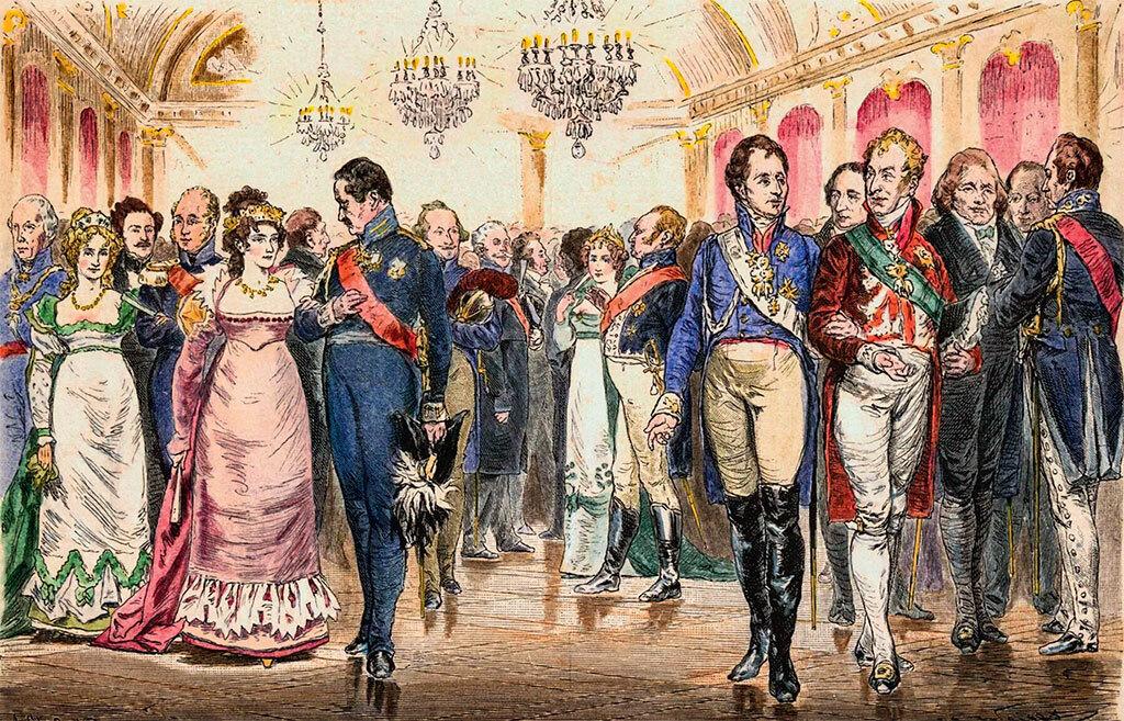 Полонез – долгий танец – час, полтора, поэтому его называли «ходячий разговор». В любой момент можно передохнуть – выйти из «гирлянды полонеза». Лакеи разносят прохладительные напитки, лимонад, вино и, конечно, шампанское. «В победе вы заслуживаете шампанского, а в поражении вы нуждаетесь в нём», – говорил Наполеон. Мадам Помпадур считала, что «шампанское – единственное вино, которое оставляет женщину прекрасной». Александр I не поощрял винных пристрастий своих современников, на балах вино в «александровские дни» обязательно разбавляли водой или заменяли простой водой с лимоном, со льдом. Единственный напиток, который Александр пил с наслаждением, – шампанское (конечно, ни о каком разбавлении речи не было).