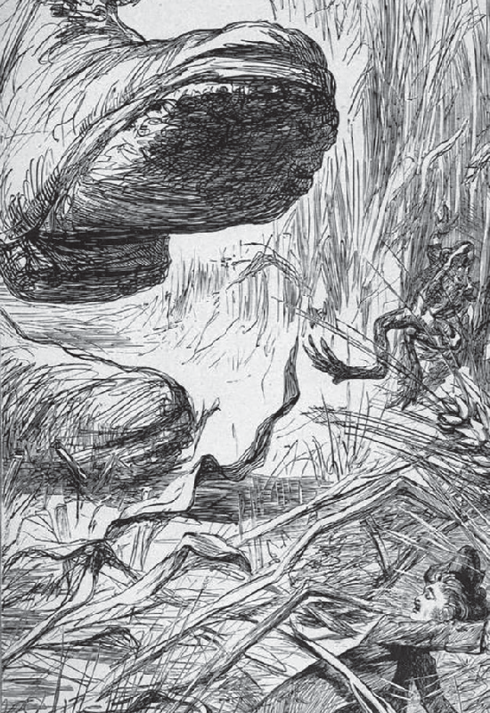 Години через чотири після того, як ми рушили в дорогу, стався один дуже кумедний випадок. Платформу спинили на хвилину, щоб полагодити щось там. Скориставшися з нагоди, двоє чи троє молодих тубільців захотіли подивитися, який я маю вигляд, коли сплю. Вони здерлися на платформу і обережненько підійшли до мого обличчя. Один із них, гвардійський офіцер, засунув мені в ліву ніздрю вістря свого списа, що залоскотало мене, наче соломинка. Я чхнув і прокинувся, а ті троє непомітно зникли. Тільки через три тижні довідався я про причину мого раптового пробудження.