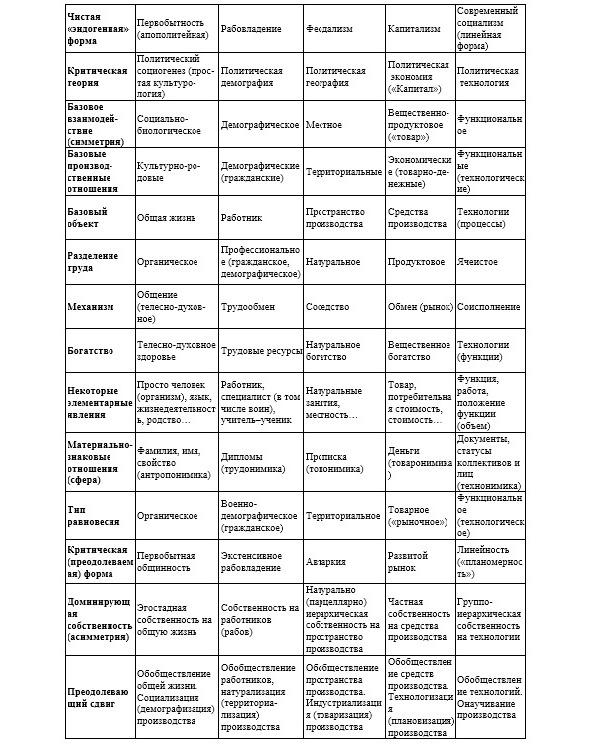 «… мы имеем пока самое общее представление об эндогенной логике — об ее эмпирическом корреляте как главной последовательности исторически новых критических форм и прорывов (не «формаций»! ): первобытность, рабовладение, феодализм, капитализм («вульгарный»), линейная (плановая) форма, где каждая из этих форм — пока только еще ничего не значащий ярлык обозначения некоторого идеально чистого критического состояния и восходящего, преодолевающего это состояние тренда (кроме теоретически известного «вульгарного» капитализма середины позапрошлого века)» [43, с. 1].