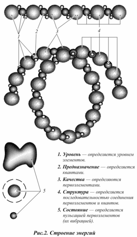 Состояние энергии (вибрация, пульсация) — определяется ее структурой (программой реакций) и оказанными на нее воздействиями. Справедливо и обратное, по вибрации энергии можно определять ее программу и оказанные на нее воздействия.