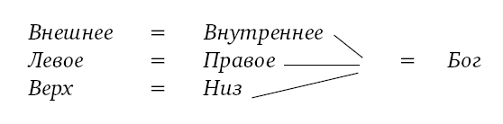 Не правда ли, данная запись уже наводит на некоторые любопытные размышления? Это символическая запись, и под верхом и низом, левым и правым, внешним и внутренним можно понимать что угодно, проводя любые аналогии.
