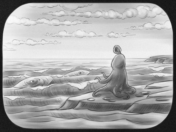 Конечности идут. По одной. Сначала одна вперёд. Потом вторая. Потом третья. Неудобно. Давай по-другому: сначала одна, потом вторая, потом опять первая. По очереди. Сами идут, без меня. А я на них еду. А я кто? Ладно, пока не важно. А может, я не туда еду? Надо же было в море всё разглядеть с высоты края. А вдруг там мама и папа меня ищут? Да нет. Не ищут. Сказали: «Закономерное!» Ладно.