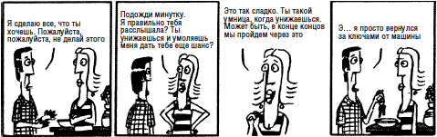 – Ты вообще не знал, что я чувствую по поводу массы вещей. Например, по поводу твоей неверности. Если бы ты знал, что я чувствую на этот счет, ты, вероятно, бросил бы меня, прежде чем трахать кого-то еще.