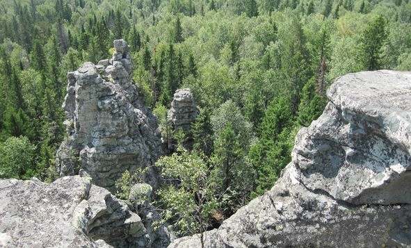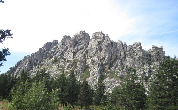Хребет Большой Таганай. Гора Откликной Гребень напоминает застывшего дракона, его отвесные скалы имеют свойство отражать и усиливать звук многократным эхом