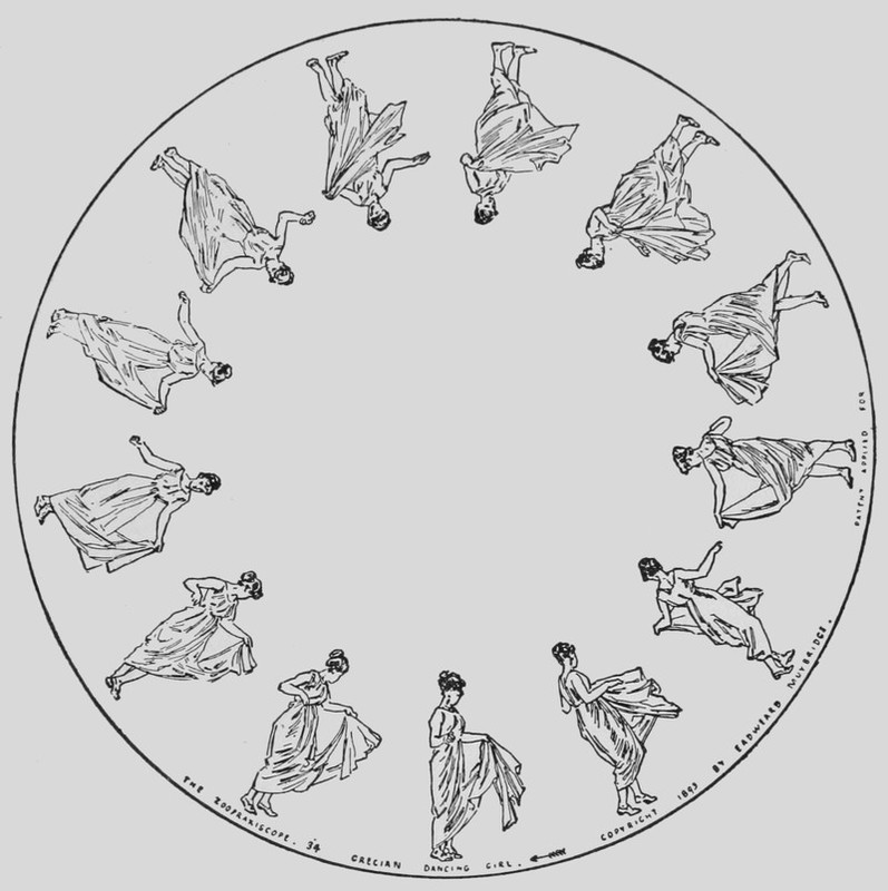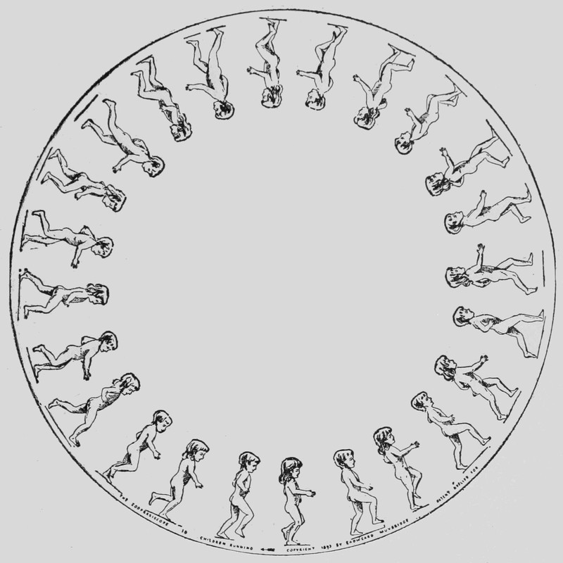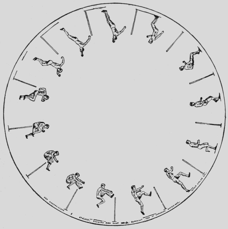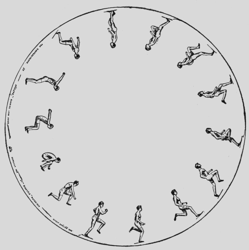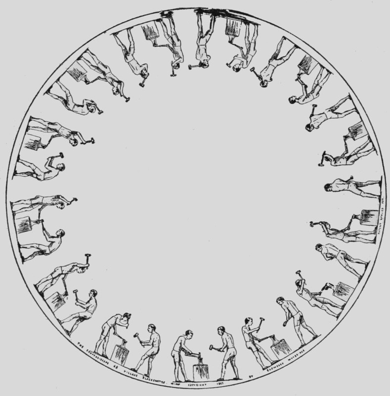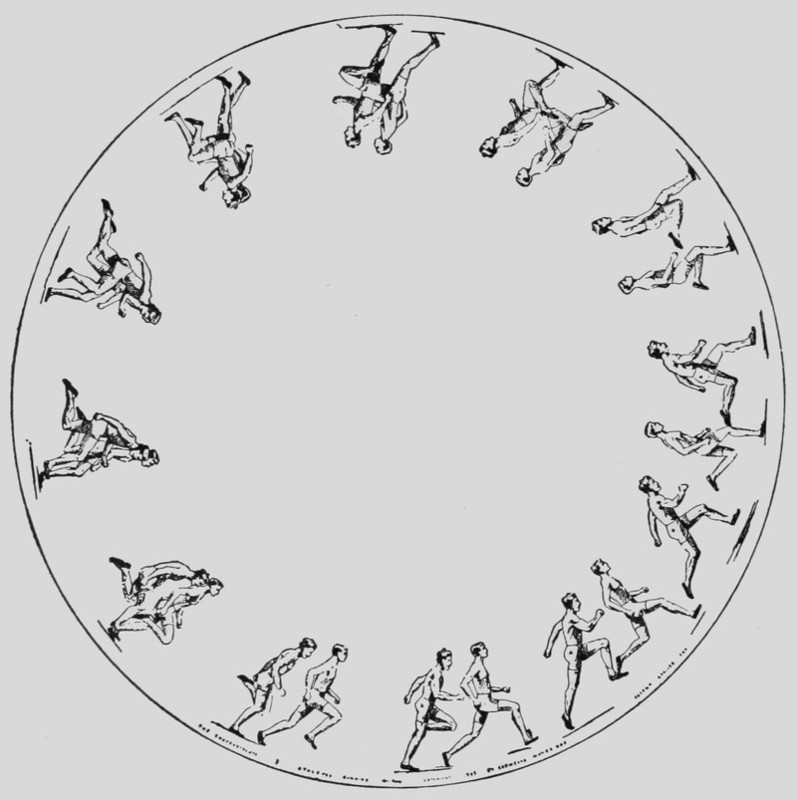 By looking through the upper series of perforations at the reflection of the lower series of figures, a semblance of the original movements of life will be seen.