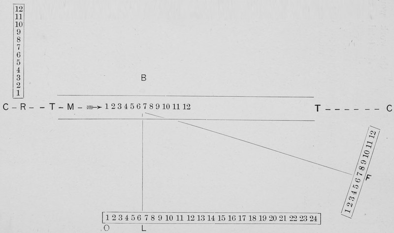 In the diagram this battery is arranged vertically for a series of "Rear Foreshortenings," the points of view being at an angle of 90 degrees from the lateral battery.