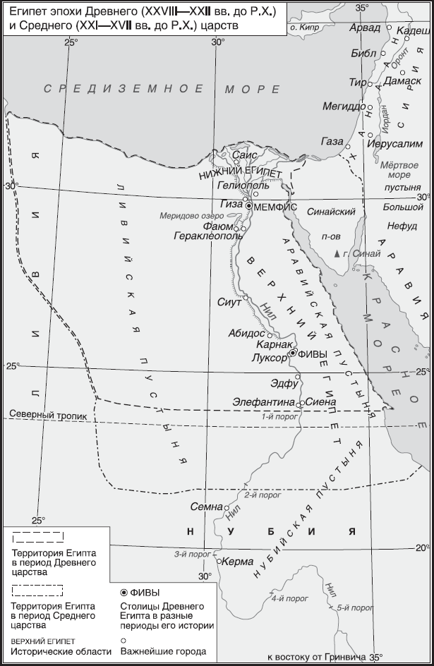 Держава надолго застыла в границах, которые ей определила сама природа. «В Египте пустыня простирается, насколько хватает глаз: на востоке – высокие плато Аравии и Синая, на которых черные сланцы и пурпурные граниты прорезаны глубокими долинами, и вода в них появляется нерегулярно; на западе – тусклое плато Ливийской пустыни с ее дюнами и скалистыми пустошами… этот неприветливый ландшафт служил естественной защитой от набегов соседей, способствовал обособленности и самобытности цивилизации, ограждал от влияния извне и в то же время ограничивал ее влияние на соседние народы… Пространство Междуречья в центре Ближнего Востока было открыто со всех сторон, что способствовало как распространению благ его цивилизации… по всем направлениям, так и обогащению достижениями других народов»[19], – поясняет историк Г. Кругликова.