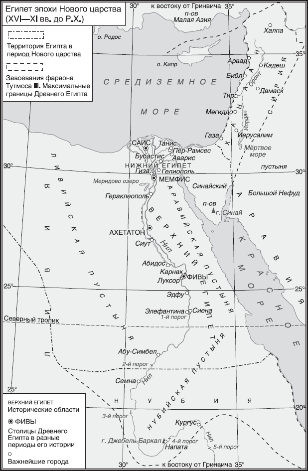 Это произошло в период Нового царства. Имперская идея все-таки проникает в Египет. Границы государства фараонов раздвигаются далеко на юг (до пятого порога Нила) и одновременно далеко на север (до Северной Месопотамии и окраин Малой Азии). Под властью египтян оказываются иные народы, культуры, города, и они вынуждены выстраивать с новыми территориями довольно сложные отношения: где-то – жесткого подчинения, а где-то – неравноправного «партнерства».