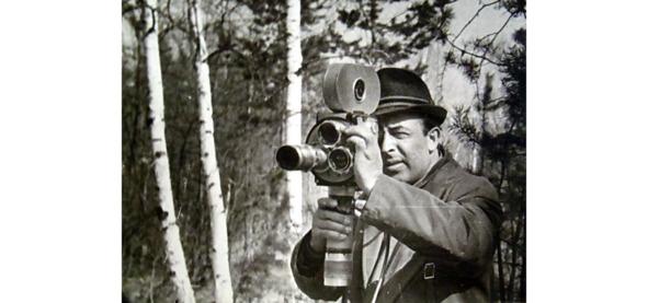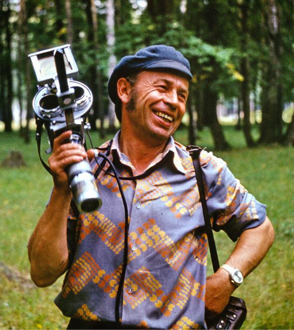 Борис Тельнов с кинокамерой «Пентафлекс».