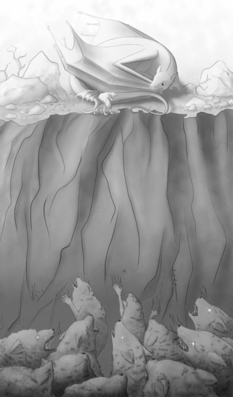 Лиара закрыла глаза и сосредоточилась. Вслед за этим в голове Дрэго появилась картина, словно он сам летел над лесами и горами. Потом дракончик увидел пещеру, в которой исчезали стаи волков.