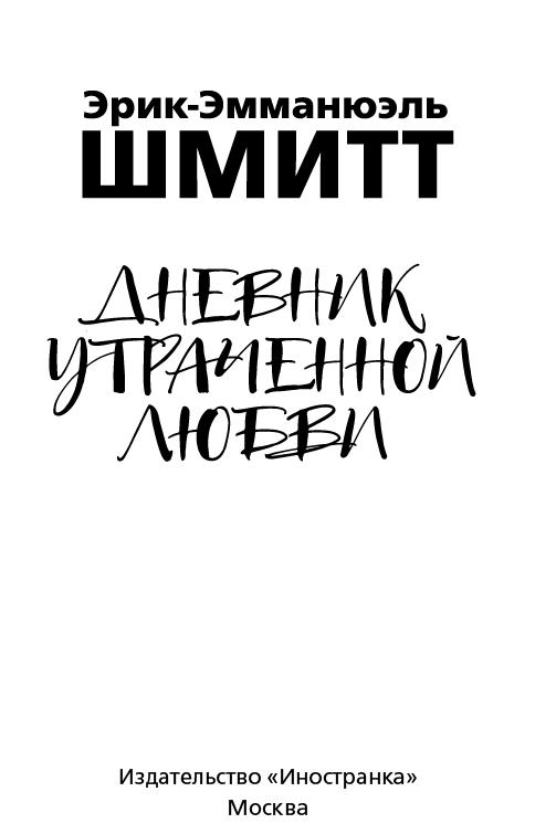 Дневник утраченной любви / Эрик-Эмманюэль Шмитт ; пер. с фр. Е. Клоковой. — М. : Иностранка, Азбука-Аттикус, 2020.