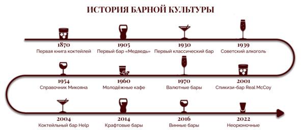 Для того чтобы ты не запутался в ключевых вехах барной культуры, мы подготовили таймлайн основных событий. В этой главе ты узнаешь подробности каждого из них и может быть, какую-то из традиций прошлого решишь воссоздать в собственном баре!
