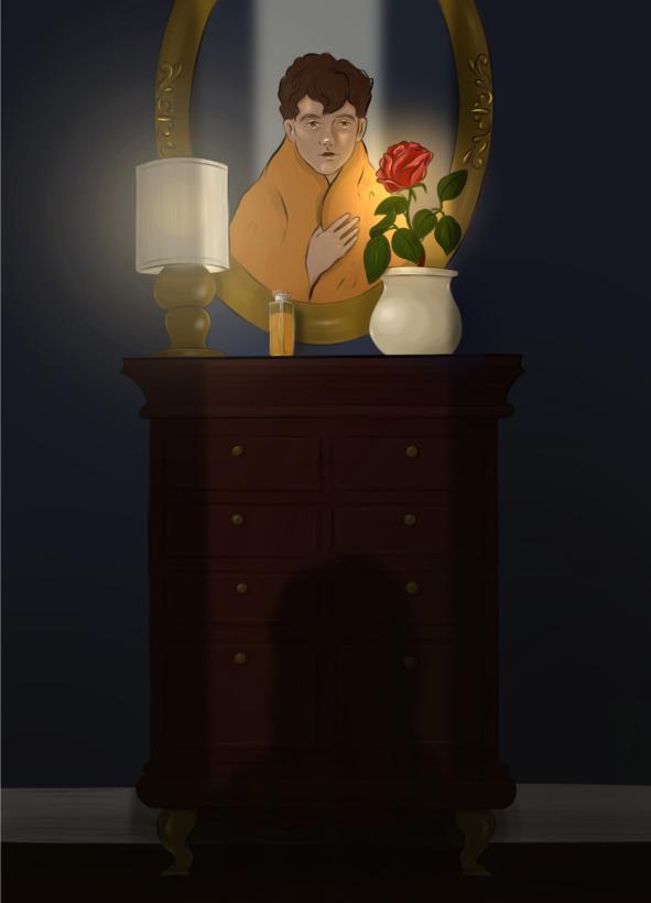 Мальчик уж было хотел закрыть дверь, но внезапно его взгляд остановился на предмете, который ранее не был замечен в поле его зрения. Приоткрыв дверцу еще чуть-чуть, Греттер прищурился, пытаясь рассмотреть предмет более внимательно. На мамином любимом комоде стоял темно-коричневый горшочек с прекрасной алой розой. Цвет этой розы был настолько насыщенный, что у Греттера начало рябить в глазах и ему пришлось проморгаться, чтобы еще раз взглянуть на этот восхитительный цветок. На цыпочках он подошел к горшочку и начал детально рассматривать незнакомку, ее сочные лепестки, острые шипы и листья ярко-зеленого окраса. Вот уже ему захотелось дотронуться до нее — аромат манил и заполнил собой всю комнату.