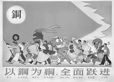 Плакат времен «Большого скачка», пропагандирующий «домашнюю» («малую») металлургию[19]