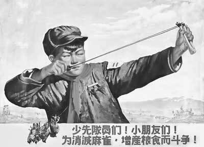 Плакат времен «Большого скачка», призывающий уничтожать воробьев