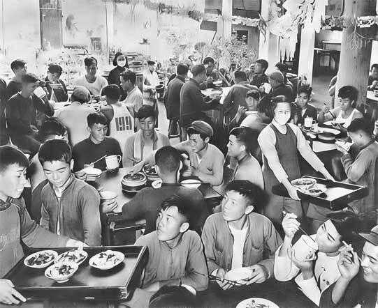Прием пищи в общественной столовой одной из народных коммун КНР. Фотография из «Альбома с фотографиями, посвященными 10-летию Китайской Народной Республики 1949–1959». 1959