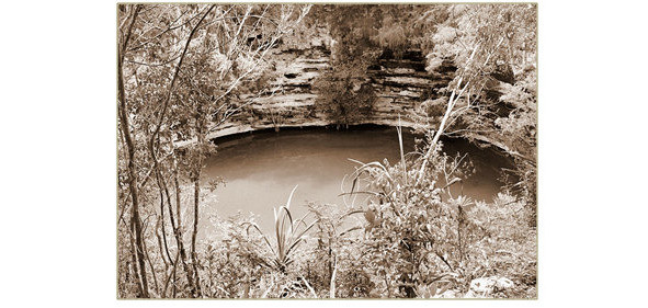 На другом континенте в древнем городе Чичен-Ица находится Священный сенот. Это круглая воронка в пластах известняка диаметром более шестидесяти метров. По древним поверьям в неё обитал бог дождя Чак, которому приносили различные жертвы, включая человеческие. Майя считали сеноты вратами в царство мёртвых, а их воды священными.