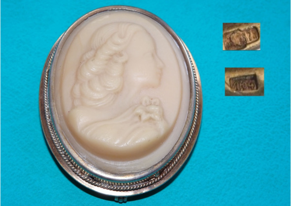 На обороте броши почти незаметные два клейма. На одном буквы ЛЮ 6, на другом клейме прописная латинская «а» (Инспекции пробирного надзора, 7 января 1954 — 7 мая 1958), с изображением головы рабочего, обращенной вправо, с шифром, расположенным слева — 875. Из этого следует, что производитель — Ленинградская ювелирная фабрика, выпуск 1956 года. Получается, что и эта брошь моего года рождения! Мистика какая-то. У меня закружилась голова от этого открытия.