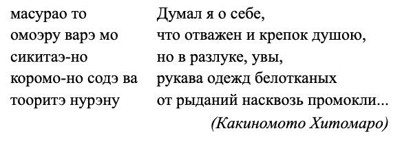 Оттого-то и преобладает в японской поэзии элегическая тональность. Сладость осознания своего бытия в прекрасном мире природы смешивается с горечью понимания быстротечности жизни, непрочности и недостоверности земных красот, соблазнов сансары. Даже страстные порывы облекаются в форму печального раздумья, поскольку в конечном счете любое стихотворение вака — лишь обращенная к мирозданию исповедь смертного о своих суетных делах. Недаром символом японского мира красоты стала сакура, чьи соцветья лишь несколько дней остаются на ветвях и облетают при первых порывах ветра.