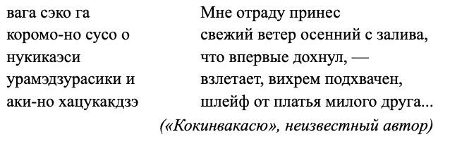 Грандиозной вехой на пути развития японской поэзии стал выход антологии «Собрание старых и новых песен Японии» («Кокинвакасю», или сокращенно «Кокинсю», X век), которая вместе с «Манъёсю» возглавляет список поэтических шедевров классической японской литературы. В 905 году император Дайго повелел четверым знатокам и ценителям японской песни вака — Ки-но Цураюки, Ки-но Томонори, Осикоти-но Мицунэ и Мибу-но Тадаминэ — составить изборник японской лирики, включив в него лучшие произведения поэтов древности и современности. Спустя несколько лет книга была готова. Тем самым было положено начало традиции выпуска императорских антологий, которые призваны были сохранить для потомства творения великих мастеров стиха.