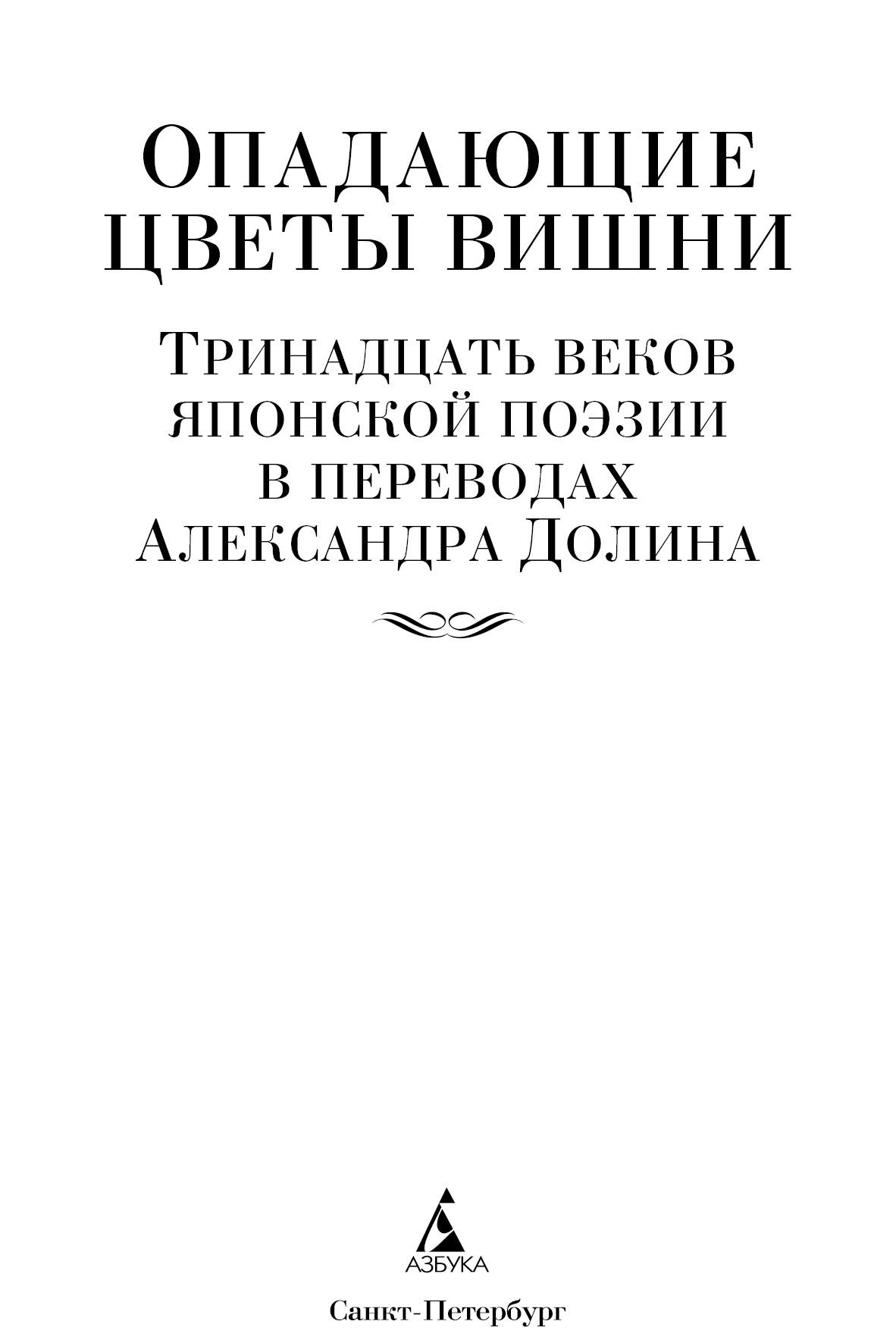 Опадающие цветы вишни : Тринадцать веков японской поэзии / сост., пер., ст. и примеч. А. Долина. — СПб. : Азбука, Издательство АЗБУКА, 2025. — (Иностранная литература. Большие книги).