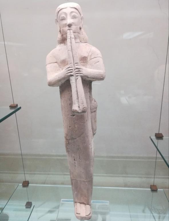 Этот инструмент напоминает две маленьких флейты с дырочками, в которые дуют одновременно, сильно раздувая щеки. В 80-х годах XX века около острова Джильо в Тоскане был найден затонувший этрусский корабль, на котором находилось несколько авлосов из самшита и слоновой кости. Они датируются V веком до нашей эры и сохранились в прекрасном состоянии. Тогда историк Симона Рафанелли вместе с музыкантом-саксофонистом Стефано Кокко Кантини создали точную копию такого музыкального инструмента. Для этого они использовали то же самое дерево самшита, которое использовали этруски, вырезали инструмент такой же формы, размера, и просверлили отверстия на точно таком же расстоянии друг от друга. Потом музыканты воспроизвели музыку древнего народа с помощью этой копии авлоса. Нельзя сказать, что получилась именно та самая музыка, которую слушали этруски 2500 лет назад. Но, наверняка, это было что-то похожее. «Три музыканта» является одной из самых известных фресок в Гробнице леопардов.