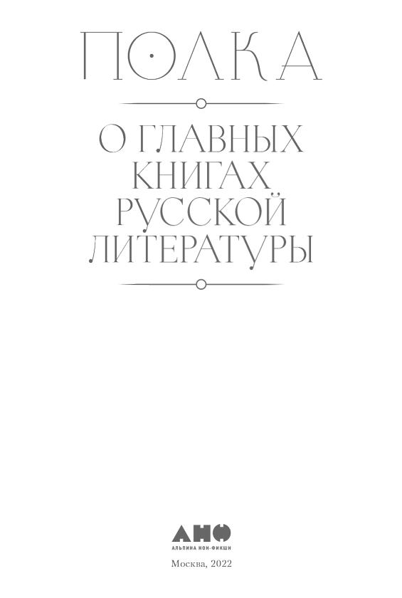В эту книгу вошли статьи, написанные авторами проекта «Полка»: появившийся в 2017 году, этот проект поставил своей целью определить важнейшие произведения русской литературы и предложить современное их прочтение. Команда «Полки» во главе с Юрием Сапрыкиным обратилась к большому сообществу экспертов — писателей, литературоведов, издателей, критиков, преподавателей — и сформировала список из 108 произведений, которые оставили след в истории, расширили возможности литературы, повлияли на развитие языка, мысли и общества, сообщили что-то новое о мире и человеке, вошли в русский литературный канон. Это романы, повести, рассказы, пьесы, поэмы, литературные мемуары. За пределами списка остались поэтические сборники, исторические и философские тексты, нехудожественная литература. Нельзя объять необъятное, но каждое из 108 произведений мы старались поместить в широкий литературный контекст, рассказать о других текстах, которые повлияли на него и на которые повлияло оно. Мы верим, что канон — это не данность, а изменчивое явление и он не должен подменять собой всё сложное и постоянно прирастающее поле литературы. Вместе с тем в процессе работы нам стало яснее, где пролегают границы того, что можно назвать классикой: старейшее произведение в списке «Полки» — «Слово о полку Игореве»; новейшее — «Чапаев и Пустота» Виктора Пелевина. Между этими точками умещается восемь столетий — и главный расцвет, как увидят читатели, приходится на XIX и XX века. У нас был не один, а два золотых века литературы.