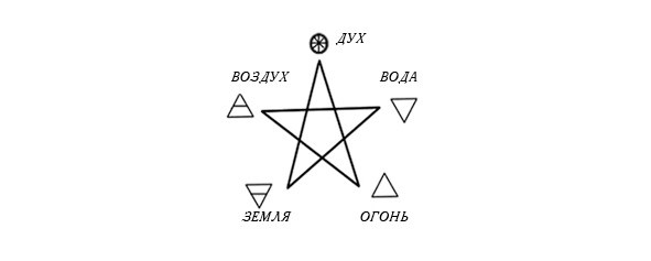 Обычно Дух игнорируют, в силу малой пригодности для практической работы, но в картах Таро он будет важен, как и тот факт, что все Стихии, включая Дух, связаны с вершинами пентаграммы. Порядок следования Стихий по часовой стрелке от Воздуха к Земле еще не раз встретится.