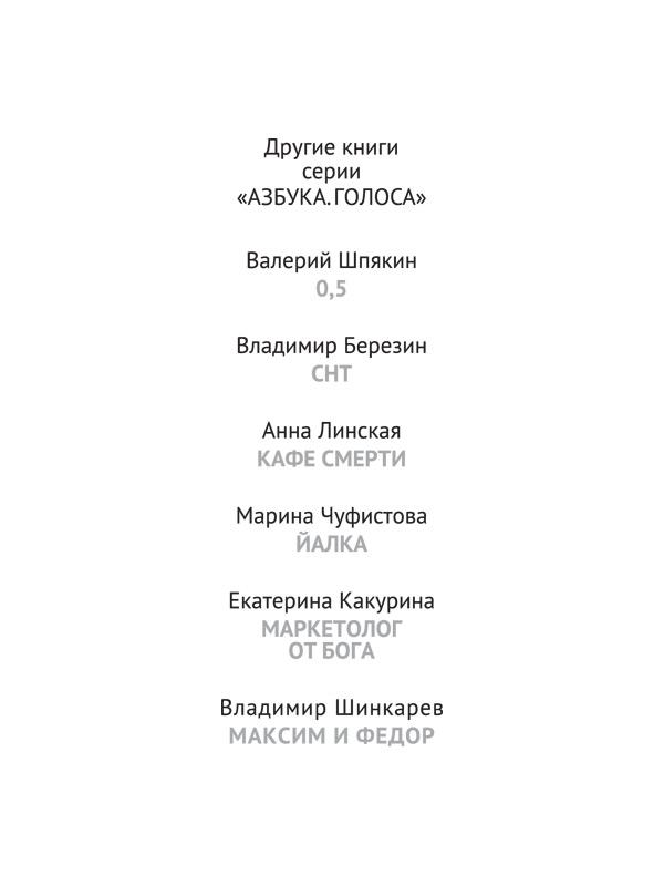 Друзья, если вы вдруг узнаете в этой истории себя, знайте, что все совпадения случайны. Всех героев я полностью выдумал, даже в тех случаях, когда вам покажется, что совпадают имена и некоторые события. И тем не менее хочу сказать вам большое спасибо за то, что вы были в моей жизни (даже если мы в конце концов расстались не лучшим образом).