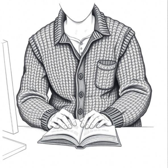 Что в нём особенного? Пожалуй, ничего: обычный мужской шерстяной кардиган синего цвета с отложным воротником, на пуговицах, с накладными карманами, но, когда я его увидел в магазине, сразу понял, что только в этом наряде и можно что-то интересное написать. У художника должен быть берет на голове, а у писателя — такой вот свитер. Мне кажется, что это — абсолютно очевидная вещь.