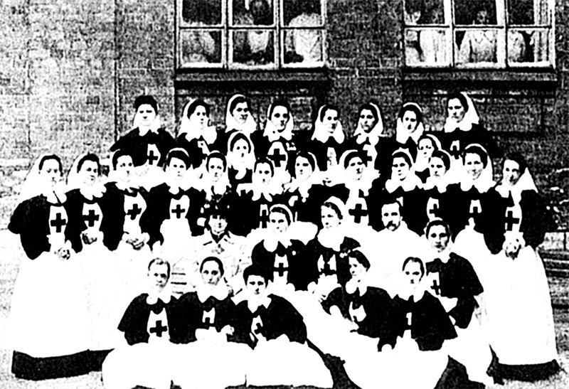 Группа сестер милосердия Общины св. Евгении перед отправкой на госпитальные суда 2-й Тихоокеанской эскадры