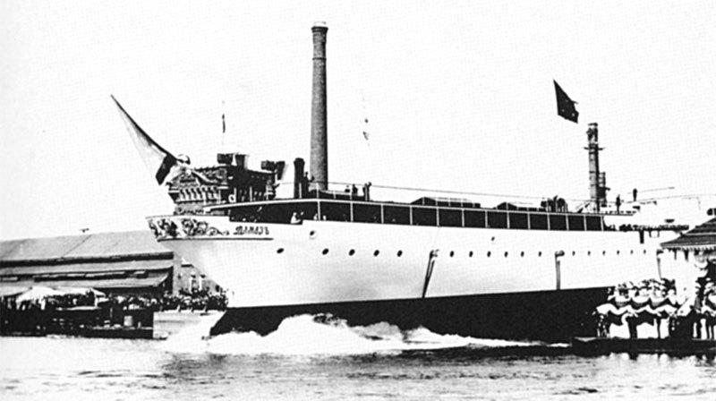 Корпус крейсера «Алмаз» на малом открытом стапеле Балтийского завода в день спуска на воду 20 мая 1903 г.