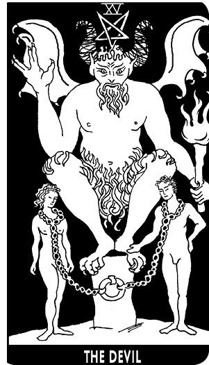 Среди Старших Арканов Таро, изображающих таинства, которые связаны со всеми религиями и традициями, одна карта символизирует все таинства — Дьявол. Подобно многим мирским обязательствам, Дьявол пугает нас. Многие из нас считают его воплощением зла, но в Таро он символизирует мудрый урок. Хотя, возможно, вас пугает его образ, ведьмы говорят: «Там, где страх, есть сила». Когда мы смотрим на то, чего боимся, мы можем обрести великую силу.