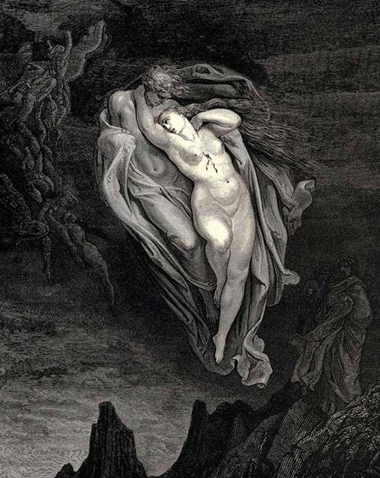 Даже адская буря на время замолкает, пока Франческа рассказывает печальную историю своей любви.