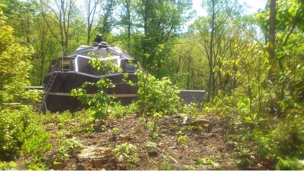 Дальше мы прокатились по всей территории сообщества, пообщались с соседями, посмотрели их разнообразные постройки. Большинство домов расположено в лесу: из-под сени деревьев уютно выглядывали постройки самого невероятного вида. Очевидно, что первые строители дали волю фантазии, расстарались и воздвигли кто во что горазд. Некоторые домики смахивали на корабли инопланетян, другие – на избушки на курьих ножках. Отдельные постройки были выдающимися по размеру и стилю, другие совсем скромные. Но вдохновлял размах строительства и творческий подход: это вам не штампованные коттеджи спальных районов больших городов!