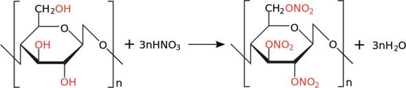 Сульфат кислота ва йод эритмаси билан гидролиз натижаси- да целлюлоза мовий рангга ўтади. Нитрат кислота билан реак- ция натижасида нитроцеллюлоза (тринитрат целлюлоза) ҳосил қилади: