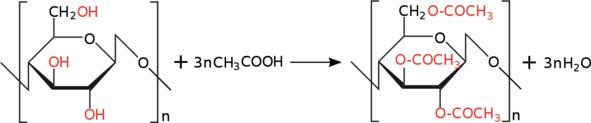Целлюлозани сирка кислотаси билан этерификациялаш жа- раёнида триацетат целлюлозаси ҳосил бўлади: