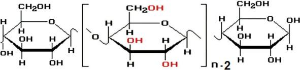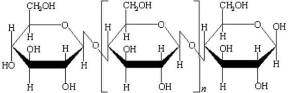 формуласи (С6Н10О5) n ёки элементар звеноси — [С6Н7О3 (ОН) 3] n кўринишда ёзилади. Ўз навбатида винт ўқи бўйлаб 10,3Å тар- тибланган, структура формуласи қуйидаги кўринишларда ифо-