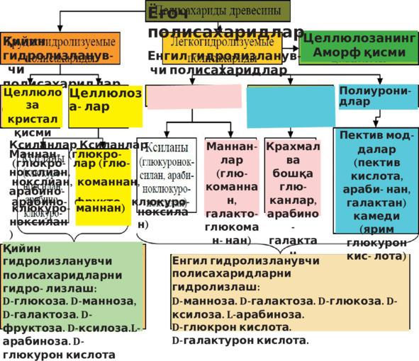 Ёғочнинг осон ва қийин гидролизланувчи полисахарид- лари
