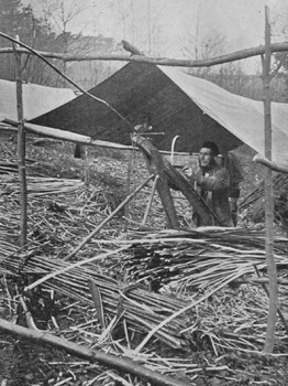 The woodman at work — Tree-cutting in frosty weather — Preparing sticks and stakes — Winter Jasmine — Ferns in the wood-walk — Winter colour of evergreen shrubs — Copse-cutting — Hoop-making — Tools used — Sizes of hoops — Men camping out — Thatching with hoop-chips — The old thatcher's bill.