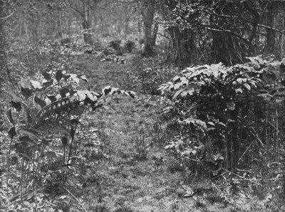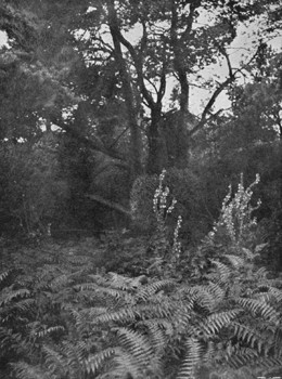 The surrounding ground is copse, of a wild, forest-like character, of birch and small oak. A wood-path of wild heath cut short winds through the planted group, which also comprises some of the beautiful white-flowered Californian Azalea occidentalis, and bushes of some of the North American Vacciniums.
