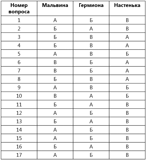Разумеется, «чистые» Мальвина, Гермиона и Настенька встречаются довольно редко. Наиболее частой является ситуация, когда женщина сочетает в себе два типа, но один из них является преобладающим. Приведенный ниже тест поможет вам определиться, к какому типу/типам вы скорее всего относитесь.