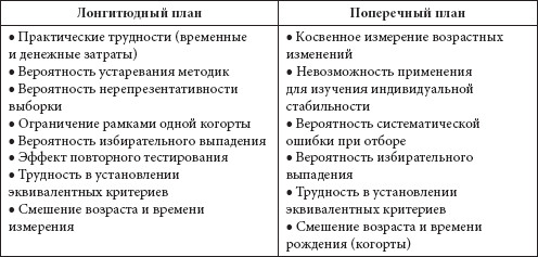 Итак, лонгитюдный метод и метод поперечных срезов имеют ряд недостатков, которые представлены в табл. 1.1 [Там же, с. 56].