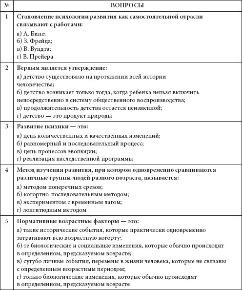 И, наконец, четвертая точка зрения, констатируя достаточную условность границ психологии развития и возрастной психологии, определяет предмет психологии развитиякак изучение общих закономерностей и тенденций психического развития человека в онтогенезе, раскрытие факторов, механизмов, движущих сил и возрастной периодизации этого развития, а предмет возрастной психологиивидит в изучении и раскрытии особенностей психического развития человека на тех или иных возрастных этапах. Таким образом, психология развития рассматривается как методологическая база возрастной психологии [Марцинковская, 2007]. Именно этого взгляда мы будем придерживаться при дальнейшем изложении материала.