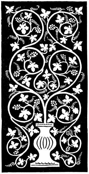 To this craft the present volume forms, I believe, an admirable introduction and text-book, not only on the side of workmanship, but also on that difficult subject, "design"—difficult, that is, from its having been so much discussed in books, yet entirely simple when approached, as here, as a necessary part of workmanship. It is fortunate that we have not as yet learned to bother our cooks as to which part of their work is designing and which is merely mechanical. Of course the highest things of design, as well as of workmanship, come only after long practice and to the specially gifted, but none the less every human creature must in some sort be a designer, and it has caused immense harm to raise a cloud of what Morris called "sham technical twaddle" between the worker and what should be the spontaneous inspiration of his work. What such combination has produced in past times, may perhaps best be understood by some reading in old church inventories of the simply infinite store of magnificent embroidered vestments which once adorned our churches. In an inventory of Westminster Abbey I find mentioned such patterns as roses and birds, fleur-de-luces and lybardes, angels on branches of gold, roses and ships, eagles and angels of gold, castles and lions, white harts, swans, dogs, and antelopes.