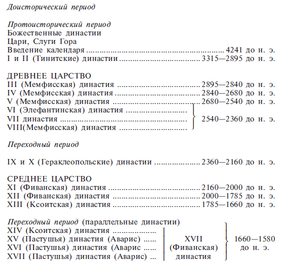 Разделение на династии, которое не использовалось античными авторами, было принято современными историками как подлинное[9] и совершенно необходимое для хронологической классификации фараонов.