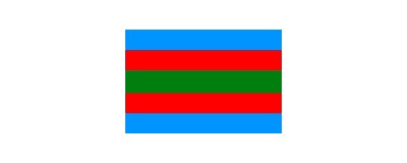Другой — «пять полос горизонтальных равной ширины: синей, красной, зеленой, красной и синей».