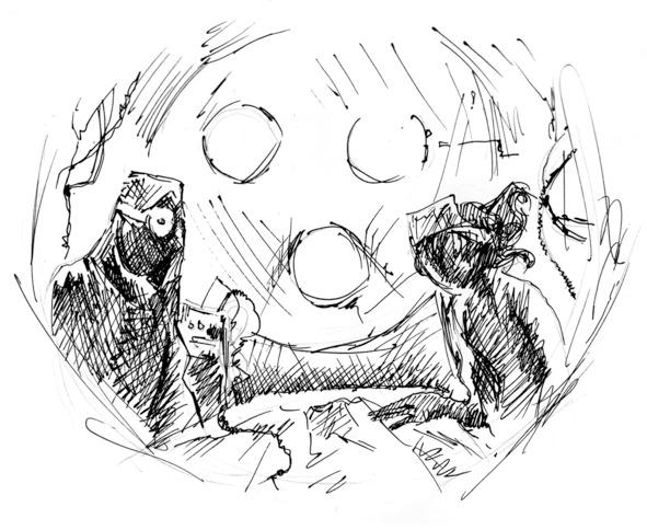 К этому моменту «заместитель» завуча завершил свою работу. Законченный им рисунок напоминал больше всего круговой орнамент, созданный из букв неизвестного языка.
