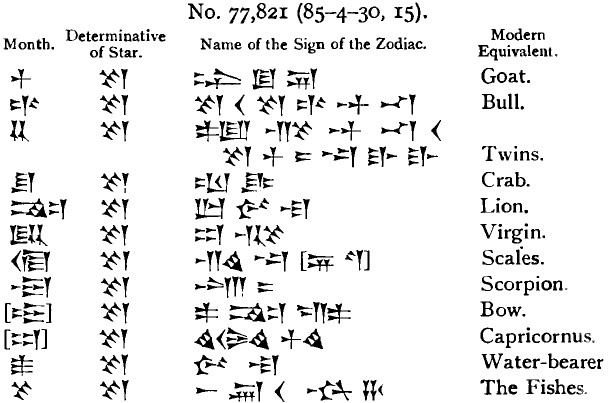 Tablet inscribed with a list of the Signs of the Zodiac. [No. 77,821.]