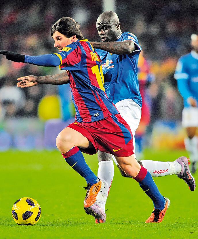 Месси всегда слыл мастером дриблинга. На фото – аргентинский игрок обходит футболиста клуба «Альмерия» Модеста М’Бами во время матча за Кубок Испании.